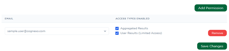 As in the image above, add the user’s email address and tick the boxes for Aggregated Results and/or User Results (Limited Access) as required