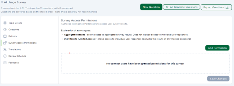 Aggregated Results: allows access to aggregated survey results. Does not include access to individual user responses